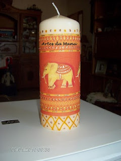 VELA C/ DECOUPAGE E GLITTER